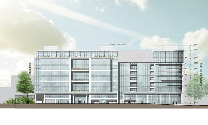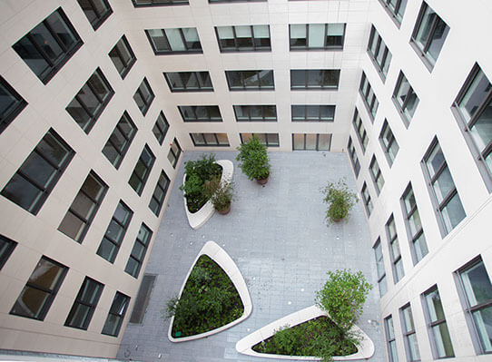 Construction neuve d'un ensemble immobilier de bureaux, certification HQE et BREEAM VERY GOOD, label BBC