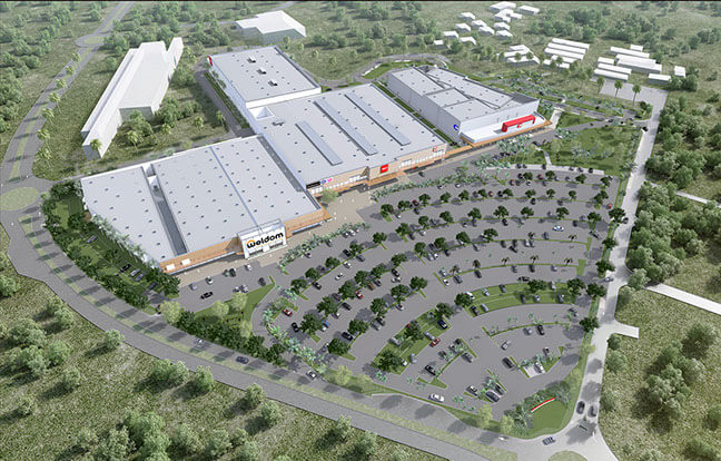 Construction du nouveau centre de vie multifonctions Family Plaza "La Providence", complexe commercial (But, Darty, Weldom, Haditat, Tati, La Grande Récré, Orchestra, Naturalia, Fitness, BNP Paribas)