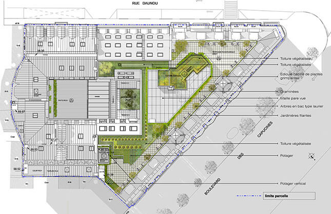 Plan masse & rooftop végétalisé