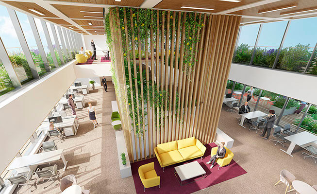 Construction d'un ensemble immobilier de bureaux certification HQE excellent associée au label effinergie +, BREEAM VERY GOOD et WELL
